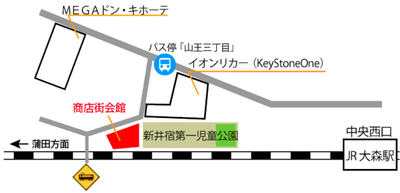 バスの場合:JR「蒲田」駅東口5番乗り場より「東糀谷六丁目」行き終点「東糀谷六丁目」バス停下車徒歩7分