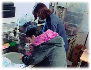 午前中のお風呂のお掃除、食器洗い、ご利用者様の見守り