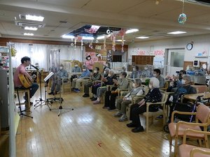 利用者さんもスタッフさん達も、とても温かい雰囲気で迎えてくださり楽しく音楽レクリエーションが出来ました。進行係の方もスムーズに進めていただき、感謝いっぱいです。本日もありがとうございました!