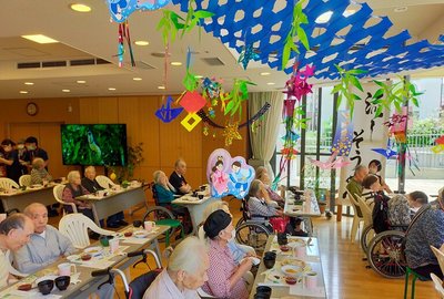 納涼祭の片付け及び利用者様を各フロアから会場への往復の介助をいたしました。太鼓と踊りで活気のあるお祭りでした。面会に来られたご家族とご一緒に明るい表情をされていた利用者様、皆さん楽しまれているようでした。 スタッフの方々も賑やかで忙しい中でのご指導ありがとうございました。 片付け補助をして感じたのは、会場設営等の準備も含め職員の皆様の大きな力強さを感じる事が出来、ここの利用者様は幸せだな〜と思いました。