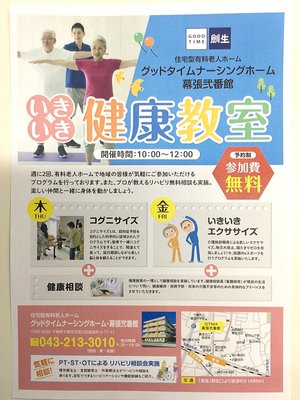 【千葉県 幕張】地域の方々との健康体操・コグニサイズ・カフェタイムを一緒に楽しんでいただける方大募集!!