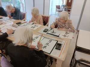 お会いした全ての職員さんが皆さん朗らかな対応で素敵な職場環境で羨ましく感じました。 ご長寿の皆さまも書道に意欲的に取り組まれていて私の声かけに、にこやかに接してくださいました。
