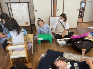 先生方が、子どもさんに合わせてかかわってくださるおかげで、楽しく活動できました。が、みなさんの様子を十分感じとれてないので、いい感じで時間配分ができていません。みなさんの様子を感じとって、音楽も活動もその様子に応じて、繰り返したり、広げたりできるよう、めざしていきます。 笑顔になられたり、おっ!?、あれっ?、これ、おもしろい‥といろいろ感じられたらいいなぁ、と思います。 次回も楽しみにしております。