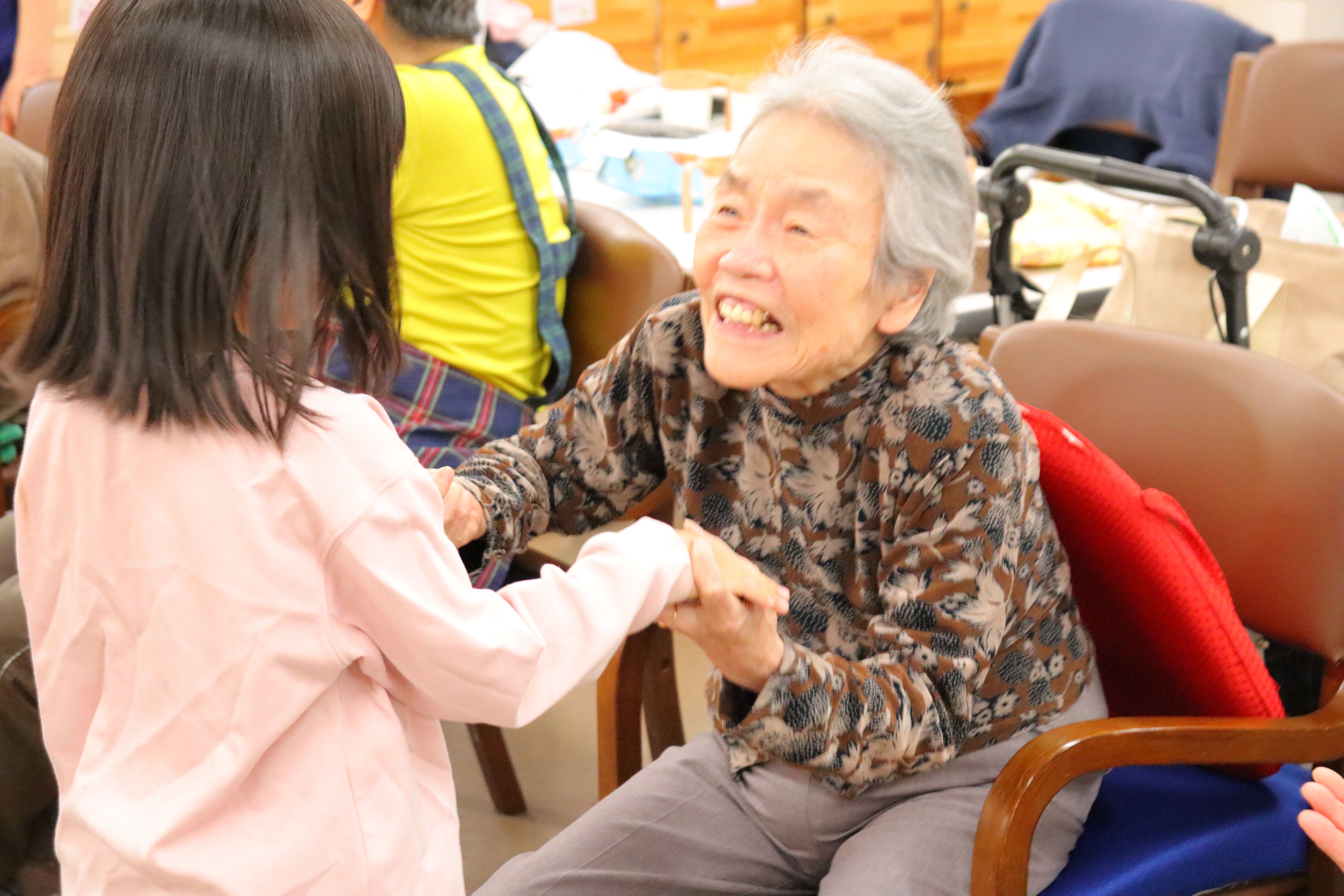 ・“楽しいから来たくなる”場所づくり 無理に通うのではなく、自然と足が向くデイサービスを大切にしています。 ・笑いと会話を大事にする関わり 何気ないおしゃべりや笑顔のやりとりを、いちばんのケアと考えています。 ・イベントが豊富で毎日がちょっと特別 季節行事や企画を多く取り入れ、「今日は何があるかな?」というワクワクを大切にしています。 ・同法人の保育園との世代間交流 子どもたちとのふれあいを通して、自然と笑顔が生まれる時間を大切にしています。 ・一人ひとりに合わせた関わり その方のペースや性格に合わせて、無理のない過ごし方をサポートしています。 ・ボランティアさんも“仲間”として大切に お手伝いではなく、一緒に場をつくる大事な存在として関わっていただいています。 ・気づけば自分も元気になれる環境 関わる中で自然と笑顔になり、元気をもらえる空気があります。