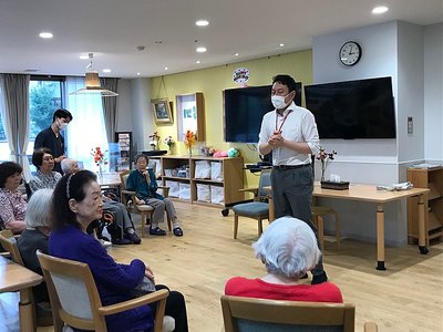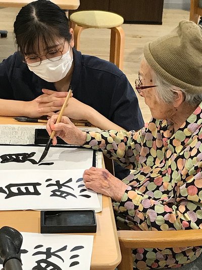 本日はありがとうございました。とても清潔で明るい施設の雰囲気と、何よりスタッフの方々が優しく、入居者様との距離感も近くて温かい雰囲気でした。 今日は書道レクリエーションを担当しましたが、書道は敷居が高いイメージがある中で、ドキドキしながらも少しずつ楽しんで書いていらっしゃる姿があり、嬉しかったです。 また皆様歌が大好きで、プログラム後一緒に歌った時間が心から楽しかったです。 機会をいただけた事に感謝しております。 また是非、来月もよろしくお願い申し上げます。