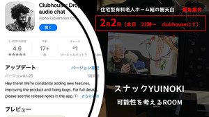 【リモート可能】今、話題のClubhouseにて“介護施設で作る「スナックYUINOKI」”のルーム立ち上げました。一緒に参加して盛り上げてくる人募集!