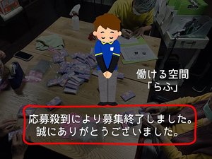今日は受け入れいただきありがとうございました。初めての利用でしたが導入から仕事中のサポートまで親切な対応で非常に助かりました。利用者さんとの触れ合いも私自身の幅を広げる上でも貴重な体験でした。また是非需要があれば参加させていただければと思います!
