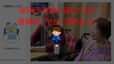 本日はありがとうございました。 皆様と一緒にとても楽しい、貴重な時間を過ごさせていただきました。 終わった後、オンラインの画面越しに皆様の笑顔や手を振ってくださる様子がみえ、とても嬉しかったです。 色々とご配慮いただき、ありがとうございました。 またぜひお手伝いさせていただけたら嬉しいです。 後ほど体験レポート、口コミ投稿させていただきます。 どうぞよろしくお願いいたします。