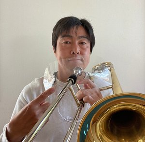 音源を持参して、昭和歌謡やジャズを演奏し、時には皆様にも歌っていただく「旅とトロンボーン」。昼食後、おやつのまでひとときを、自身の旅の話を交えながらご一緒させていただきました。