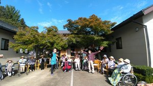 椅子に座ってのラフターヨガを行いました。手を上に上げたり手拍子を叩いたりのラフターヨガですが、皆さん明るいし、話しにのってくださったので、とてもやりやすかったです。 歌を使ったラフターを中心におこなったのが、とても良かったと思います。 終わってからも、ラフターヨガの歌を歌って下さっていました。喜んで頂けて良かったです。 木の温もりのある施設がとても居心地が良かったです。