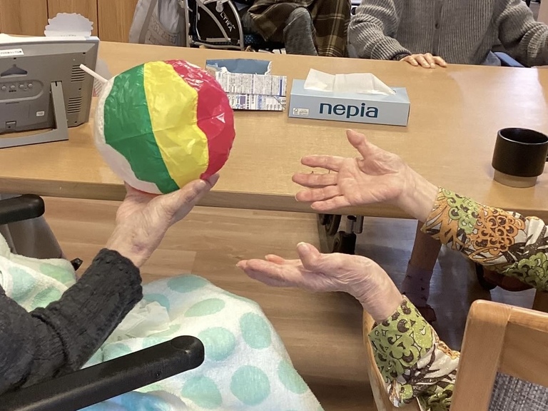 回想法「昔を語る会」のレクリエーションでみなさんで楽しむことのお手伝いをさせていただきました。 昔使った道具にふれたり、なつかしい8ミリフイルムの映像を見たりして思い出したことを語り合うレクリエーションです。 その他、子供の頃に遊んだ紙風船やおはじきで遊び、秋の童謡などみんなで合唱して楽しんでいただきました。 利用者さんには「楽しかった!」「友達の顔を思い出した」と喜んだいただいたようです。