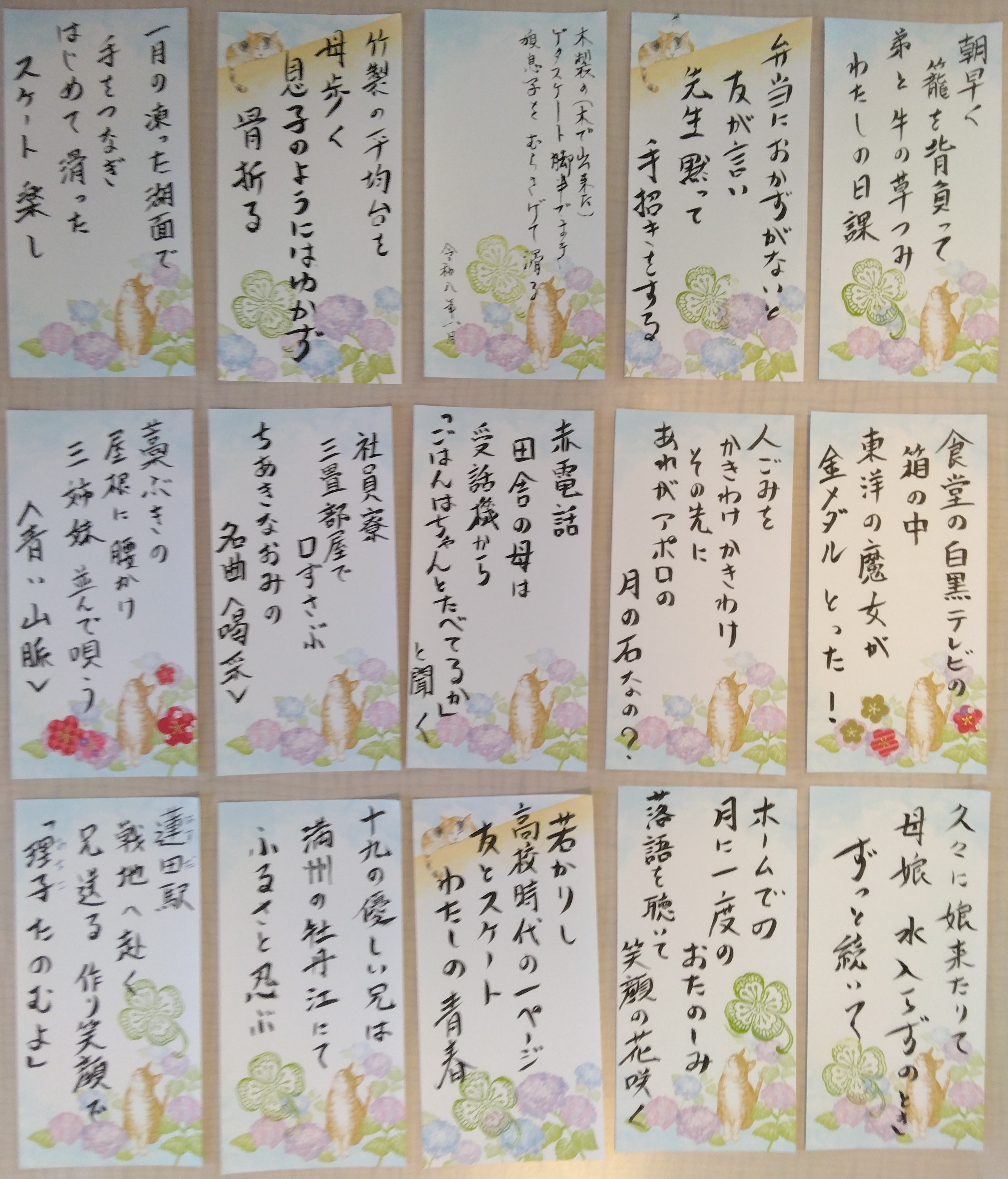 短歌は作品づくりの前のおしゃべり(ネタ出し)が要です。この場で面白いと思ったエピソードや参加者が共感する話が出てくれば、後は三十一文字に整えるだけ。おしゃべりは脳トレも兼ねており、巷の短歌結社の歌会とは方法論が全く異なります。回を重ね、お客様も慣れるにつれて理屈ではなく、感覚的に短歌の楽しさを取り込み、満足していただいている様が伺えました。おまけで披露したショート落語は短歌づくりのおしゃべりから出てきたお客様の面白エピソードをお噺にしたものです。お客様とのコラボの賜物です。写真は本日の作品集です。施設の許可を得て、お客様のお名前を出さないで投稿しています。