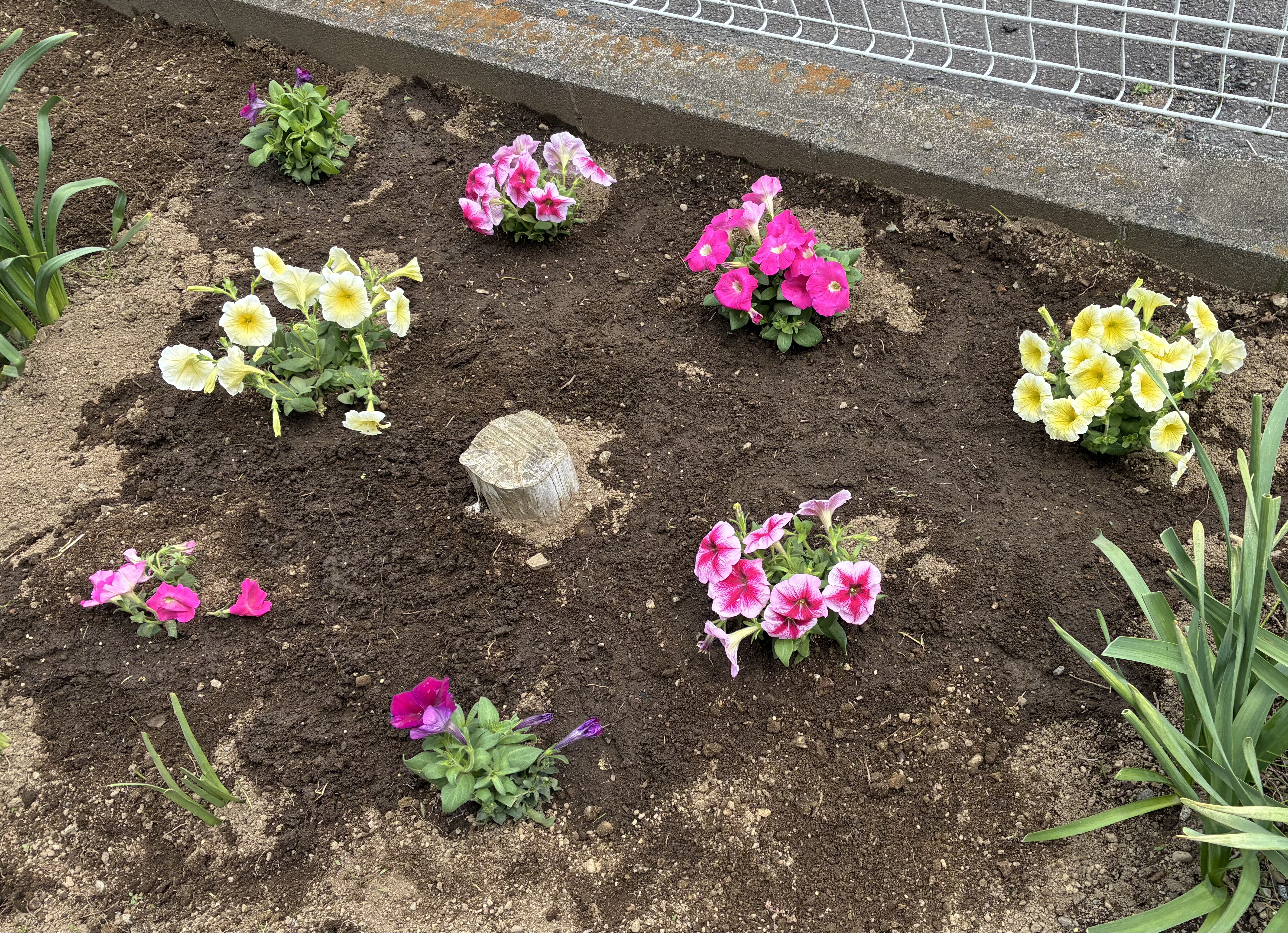 定員18名のグループホーム敷地内にある花壇の手入れで、定期的に通わせて頂いています。以前華道を習っていたことや、プランターで花を育てたことがあり、お花に関わることに興味があったため応募しました。本や知人に聞いたりして、日々勉強しながら進めております。花壇は比較的広く、草取りや土づくりから行っているため、時間がかかりますが、今回ようやくペチュニアの苗を植えられました。