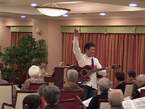 一番驚いたことに、初参加の方がカーテンをもう少し閉めた方が先生の顔が見やすい!等施設の環境について発言されたことです。もうすっかりこの施設に馴染まれているんだなあ、と感じました。とにかく明るくて居心地の良い空間であることは最初に伺った時に感じていましたが、なるほどと思わせていただきました。以前リクエストをいただいていた方がいらしておりその曲を演奏すると、一番後ろから前の方に来られて歌われていました。口数の少ない方でしたが、お互いに8の字がかけて通じることが出来嬉しくなりました。またそのリクエスト曲を他の皆さんも涙ながらに歌われ、昭和の時代を生きてこられた皆さんの人生を感じさせていただきました。歌っていいな、と改めて想わせていただきました。ありがとうございました。